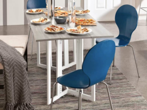 Dining room table that stacks into a wall as a credenza, but expands out to seat 6 to 8 people and then falls back into a credenza when not in use.