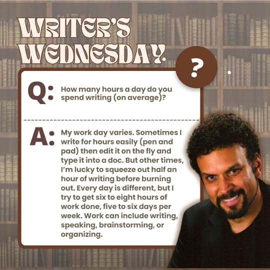 Writer’s Wednesday: Curious about a writer’s day? How many hours do you think I spend writing daily?…