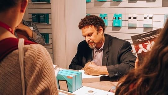 Rough translation: “In the evening there is still my absolute trade fair highlight: Neal Shusterman. This man is just insane. The reading was informative, funny and above all incredibly intelligent. I’m just flash...