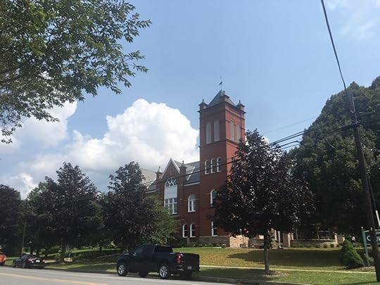 The schools are the only schools for the entire county. Well, two if you count that the elementary school building is right next to the junior-senior high school but not connected. I did not drive the 12 minutes from my house to photograph the school buildings because I had too much going on this week and last. I searched for photographs online and there were zero. I mean zero photographs of the school buildings, other than a few I found on Facebook of the building after firefighters had to respond to a fire there in 2019. The building was damaged, but luckily renovated and repaired. I also found another one of the building on the first day of school, though most of it is blocked by the busses. The photograph does, however, show part of the lovely campus the school is located on.