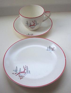 It's nearly Christmas! And I have a new Christmas obsession. I've always wanted a special set of Christmas china, but all the stuff in the shops is either tacky cartoon Santas, or ultra-modern angular shapes. I wanted something a bit more traditional, but not too ornate and fancy, and I espied it in Nigella's Christmas. It's Crown Devon Stockholm, from the 1930s, and I covet it. So the plan is to collect one or two pieces a year (there's bits and pieces floating around on eBay), until I have a full set. Isn't it beautiful?