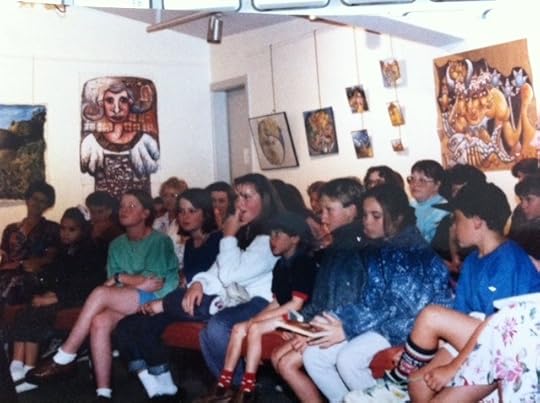And finally, this photo was taken at the very first CYL event I ever went to, when it was still at St Martin's Youth Theatre. This is from a Bookgig featuring Isobelle Carmody's The Gathering. Look at tiny 11-year-old Lili with her too-short jeans and white socks! She is currently being very inspired by Isobelle Carmody and hoping that one day, she'll get to stand up there and talk about her books*. I found this photo in the CYL archives after I'd been there for about six months. I don't really believe in destiny or signs, but finding the photo certainly made me feel like I belonged.