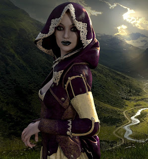 Un caballero envuelto en una gran capa negra, y que se cubría con su capucha la cabeza, alto y de aspecto elegante, entró en el recinto. Por sus ropas parecía ser aristócrata. Llevaba una espada, la cual estaba sujeta a su espalda; el pomo tenía tallada una serpiente con alas, cuya imagen se repetía formando parte del arriaz, donde se observaba la cabeza de la serpiente; en sus gavilanes se desplegaban sus alas, y el cuerpo se enroscaba en el recazo.