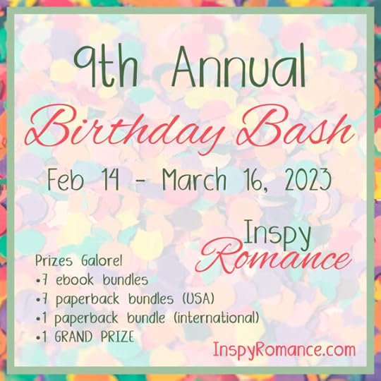 I blog with a group of contemporary Christian romance authors over at InspyRomance.com. In my completely unbiased opinion, it’s one of the best corners of the Internet. There’s a blog post every day with authors talking about bookish things and sharing behind-the-scenes snippets. We’re having a huge giveaway to celebrate nine years of this wonderful blog. It’s been going on since Valentine’s Day, but you still have six days left to enter the prize giveaway.