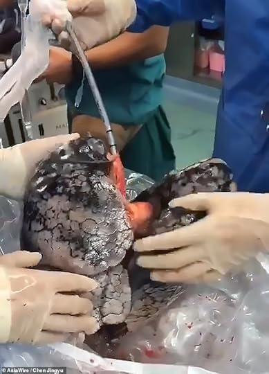 Em vez de os pulmões serem de uma cor rosa saudável, eles haviam se transformado em cor de carvão e estavam extremamente inflamados.