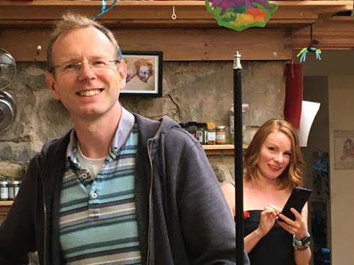 We were all good to go, doing a couple of rehearsals, when another problem presented itself: I needed my headset to monitor everything. William could do the nominations 'deaf' as it were, but he needed a headset to talk to Mike and Jamie. Gina's husband Richard had a spare headset. Much time was wasted trying to get the MacBook to play continuously through two headsets before I realised I could just wipe down my headset before giving it to William. I'd be 'deaf' to the Zoom call, which made me nervous, but during our set up check at 7:30 with Mike and Jamie the levels seemed to look okay. Mike and Jamie popped out of the Zoom Room with a view to popping back nearer the time.