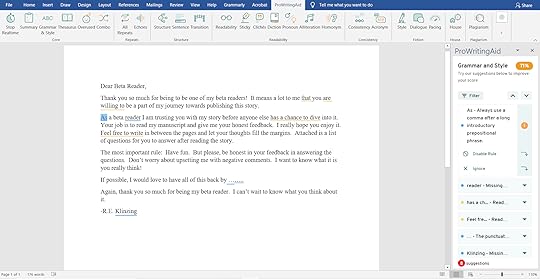 Here is an example of what the software looks like on Office Word. This document is a sample letter I send to my beta readers: