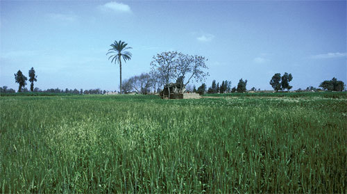 The Oasis of Siwa itself is a very extensive shallow basin, being approximately 82 kilometres from east to west and 28 kilometres from north to south. Within this depression are seven large salt lakes, the greatest of which are Birket Siwa and Birket Zaytun. As well as these large areas of standing saline water, which are obviously useless for irrigation, there are a number of man-made artesian wells which provide more than sufficient fresh water to irrigate vast plantations of date-palms and fruit-trees.
