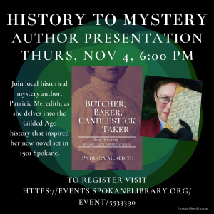 Spokane Public Library PresentationThursday, November 4 at 6:00 PM PST I’ll be sharing more about the historical research behind the writing of Butcher, Baker, Candlestick Taker with plenty of time for Q&A afterward!