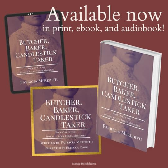Butcher, Baker, Candlestick Taker is the first in the Spokane Clock Tower Mysteries, a new historical mystery series available everywhere books are sold in whatever format you prefer!