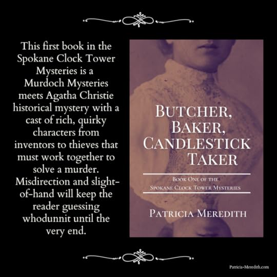 Butcher, Baker, Candlestick Taker is the first in the Spokane Clock Tower Mysteries set in Gilded Age Spokane.