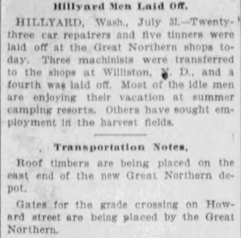 “Joseph C Overbeck arrived at Hillyard yesterday to take the position of operator at the Great Northern depot.”