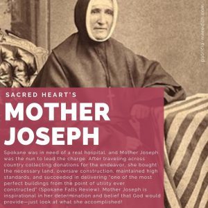 Spokane was in need of a real hospital, and Mother Joseph was the nun to lead the charge. After traveling across country collecting donations for the endeavor, she bought the necessary land, oversaw construction, maintained high standards, and succeeded in delivering “one of the most perfect buildings from the point of utility ever constructed” (Spokane Falls Review). Mother Joseph is inspirational in her determination and belief that God would provide—just look at what she accomplished!