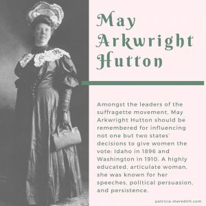 Amongst the leaders of the suffragette movement, May Arkwright Hutton should be remembered for influencing not one but two states’ decisions to give women the vote: Idaho in 1896 and Washington in 1910. A highly educated, articulate woman, she was known for her speeches, political persuasion, and persistence.