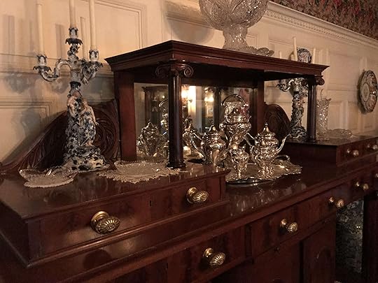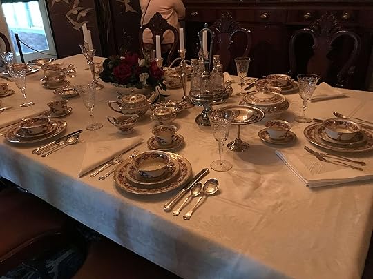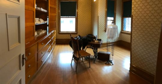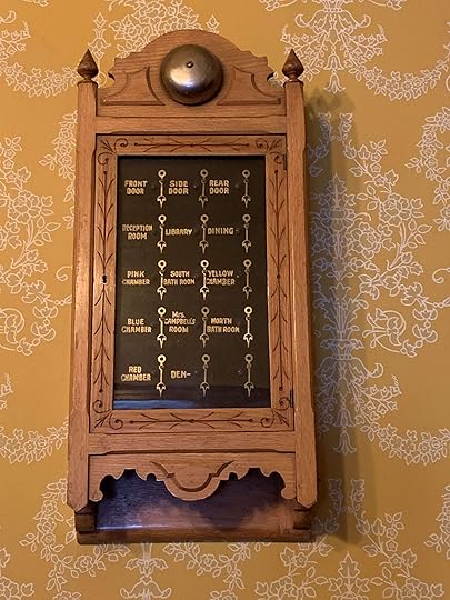I tried to incorporate as many as possible of the visible aspects of the house that you can still view today, like the annunciator call bell system, the large clock in the hall, the sewing room, Mr. Campbell’s office, and the rather pink reception room.