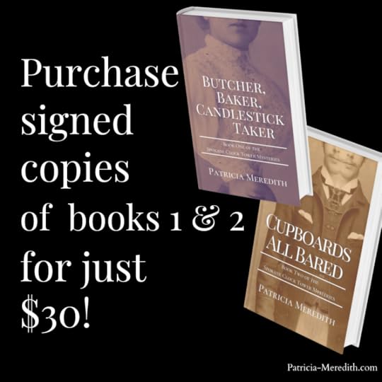 I’m having a deal on my website! For a limited time only, purchase the first two books in the Spokane Clock Tower Mysteries for just $30! (Regularly $16.99 apiece.) Leave me a note if you’d like them signed to someone personally!