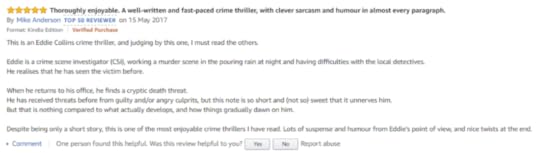 I am not usually a fan of short stories, just as you are getting into them, they are over. This one is different, the compelling storyline immediately drags you in and hits you with twist after twist, and with the dark humour of Eddie Collins thrown in, you will not be able to put it down! This is easily the best short story I have read and would recommend it to anyone, The climax is quite brilliant!
