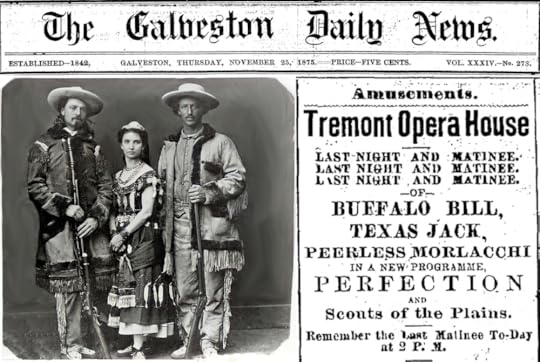 On Thursday, November 25th 1875—Thanksgiving Day—families in Galveston, Texas, could go to the Tremont Opera House and enjoy a 2 o'clock matinee performance by Buffalo Bill Cody, Texas Jack Omohundro, and "The Peerless" Morlacchi in their show The Scouts of the Plains. The tour had kicked off in Philadelphia back on August the 18th, 1875, and would hit over 100 cities before it finally ended on the 3rd of June in Wilmington, Delaware. The packed crowd watching the afternoon show in Galveston was unaware, as were the stars of the show, that this would be their last tour together.