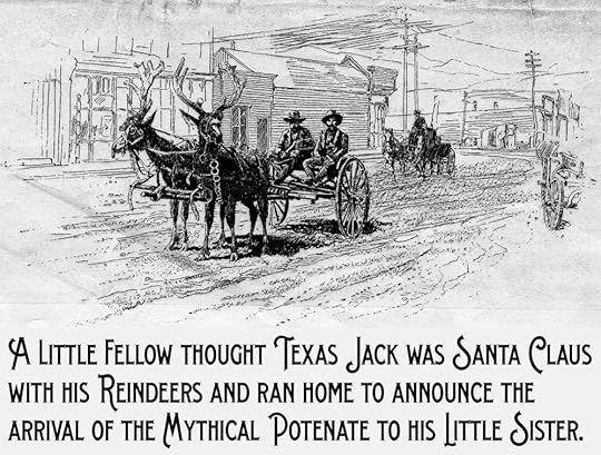 Reading this one, a couple of lines stuck with me. "He was all that any maiden might wish for in the shape of man. Half cowboy and half scout, he seemed a youthful errant knight. Poor Texas Jack, how pure thy spirit was! The world hath judged, yet known thee not—hath called thee "wild," "inebriate." A mirthful, bold, but reckless scout, yet, oh, what melancholy and heartache were thine! How tirelessly upon thy track care, despair, and sorrow ever trod."