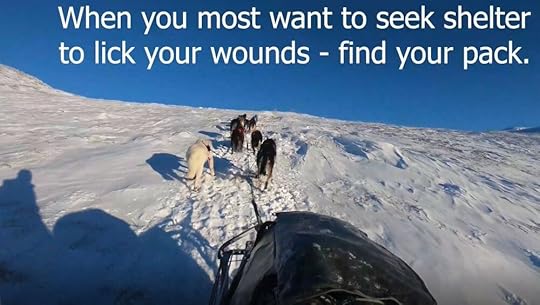Eagle Summit requires teamwork-all of us working as a unit in sync with each other. The leaders, Blonde and Joy, are driving the team up and over the summit, the team dogs are matched in stride, and I am running alongside pushing the sled to do my part. Life doesn’t get any better than this.