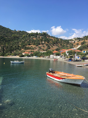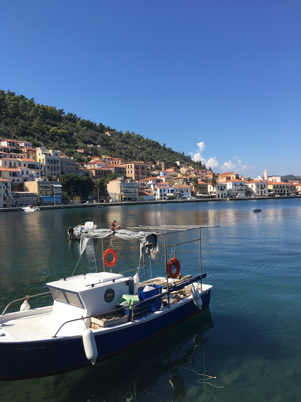 Galaxhidi And finally, to our favourite place of all. So much so, I don't really want to write it down. But seeing as you've read this blog and we're friends now, I will let you into a secret. This beats every other spot we visited in Greece by a country mile. And it turns out that we've good taste, because it was the favourite rest-up of Greek sea captains too, many of whom chose to live here in between their sea voyages. There's not much in Galaxhidi, a couple of nice tavernas and a handful of shops selling local produce. But, what makes the place so special is the sea. The pastel-coloured town juts out as a peninsula from a sweeping bay, surrounded by the clearest turquoise waters. If I ever go to sea, it's Galaxhidi that I'll come home to, too.