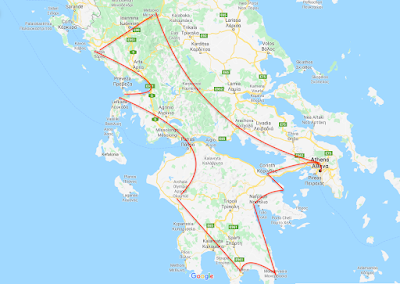 Athens to EpidaurusNafplionMonemvasiaGythioKardamiliOlympiaLefkadaPargaMetsovoKalabakaDelphiGalaxhidiAthens