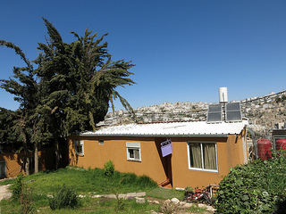 A recently-repainted building, originally meant to be temporary, in Tel Rumeida / Admot Ishai.