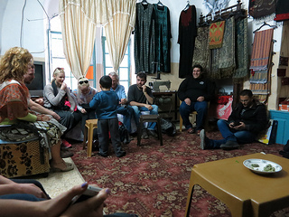 After that the conversation shifted into a kind of general Q-and-A, in which people asked questions both of our host and of Mohammed. I remember hearing from Mohammed that he absolutely believes that the settlers receive government stipends for living in Hebron, and I remember hearing him say that the Palestinians just want to live in peace, to have equal rights, and to be allowed to move freely around the country, but the Israelis aren't interested in peace and will never agree to it. (I remember hearing similar things from the Palestinians who spoke to the group with which I came to Hebron in 2008.)
