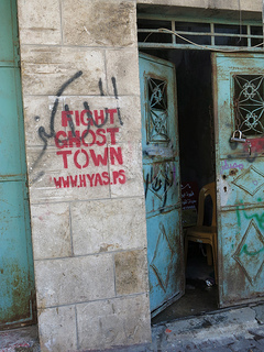 Shuhada street graffiti: one protesting the ghost town, the other pro-Third-Temple.