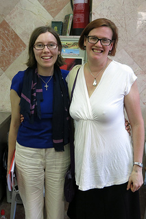 One of the joys of being a longtime blogger is having the chance to meet people whose words one has read for years. I've had the opportunity to meet three bloggers while I've been in Jerusalem. First I had lunch with Chaviva (of Just Call Me Chaviva); then Ilene (of Primagravida) hosted me for a poetry reading; and then I spent most of a day with Vicky (of Bethlehem Blogger.)