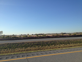 But then the hills went away, and as soon as I crossed the border the fields were sere and flat:
