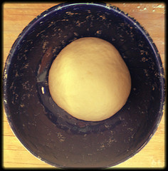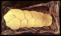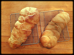 I used to bake bread every Friday, though these days I don't often make the time. And I've grown to love the weekly ritual of taking Drew to the A-Frame Bakery in Williamstown after daycare on Fridays, where he joyfully clamors for "a challah an' a cookie!" But I was tempted by the thought of Maggie Glazer's Sourdough Challah. I've never tasted a sourdough challah. Would the bread have any of the tang I associate with sourdough? Or would it simply be a rich challah which happens to be leavened only with the natural activity of yeast and flour and time? (For that matter: would it leaven? Or, in the absence of a packet or two of storebought yeast, would I wind up with flatbread?)