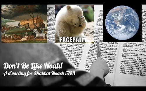 To be clear, I don't believe that the climate crisis is a punishment for human wickedness the way Torah says that the Flood was. The climate crisis is the natural consequence of generations of collective human choices made by the industrialized world. We broke it, and we're going to have to fix it. But I do believe that the story of Noach has something to teach us today, to wit: don't be like Noah.