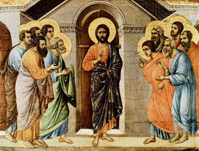 El evangelio de hoy se divide en dos escenas claramente distintas. En la primera, Jesús se aparece y da pruebas de que es él. En la segunda, tiene una breve catequesis sobre su pasión, muerte y resurrección.