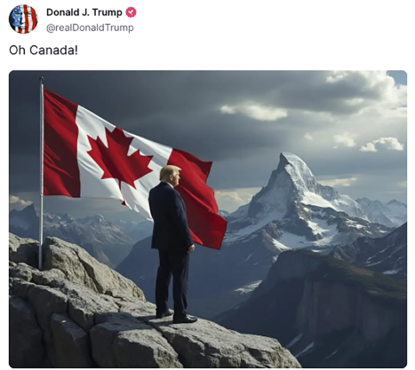 Wait. Do you see it too? Yeah, that’s that Matterhorn in the background of the President-elect’s post after saying that Canada should become a state.