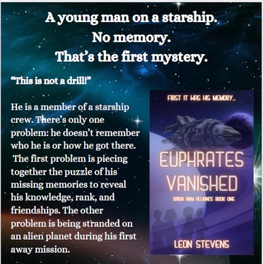 Map: Since the series involves the interstellar Orion Arm Alliance, I have a map of the planets in relation to the Earth. If there is a map in a book that I’m reading, I will refer to it often if a location is mentioned, but with ebooks, that’s more difficult, so…maybe a bonus for the paperback version?Pronunciation guide: With many sci-fi and fantasy books, character and place names can be difficult and I tend to mumble through them, which makes my favorite characters, blahblah and mumbmls.An description/excerpt from the next book in the series: I did this for Euphrates Vanished, to pique curiosity. I guess I have to start writing book three.-Leon