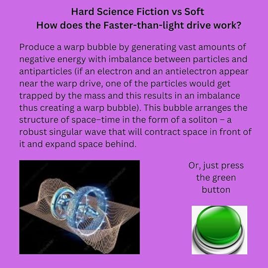 I don’t want my readers to have to try to wrap their heads around how a ship can get from one planet to another in a reasonable time. There are just some concepts you just have to accept to allow you to enjoy the story.