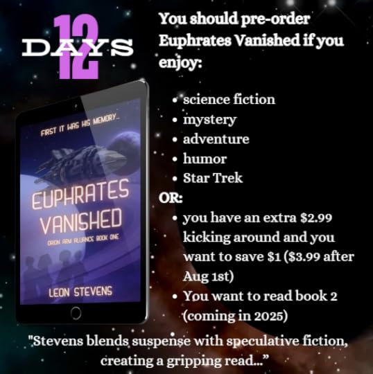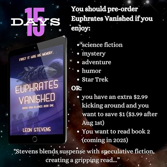 Launch day is getting closer! If you haven’t read chapter one of Euphrates Vanished yet, check out the options on my homepage.