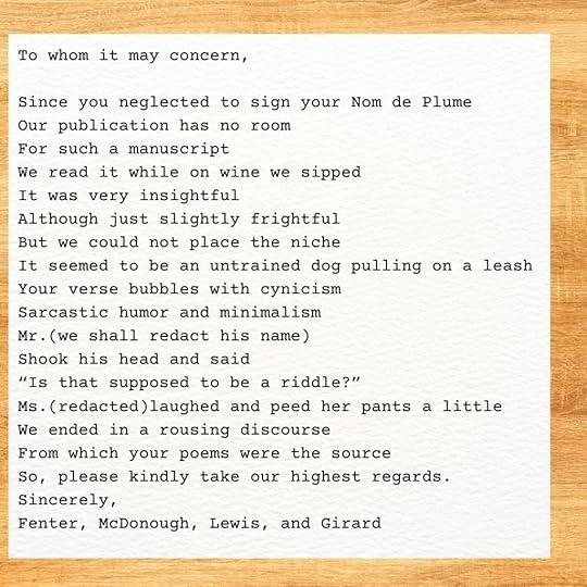 I have never submitted my work to a publisher, but I suspect if I had sent in my poetry book, it might result in something like this.