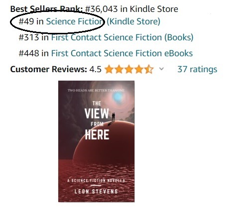 Until my book, The View from Here is no longer available in Amazon’s Prime Reading catalogue. I’m hoping it will be picked up for another term, but I don’t know how likely that is. Its catapulted the book into the high 100s in the Science Fiction category, and sales for the next two books have been trickling in.
