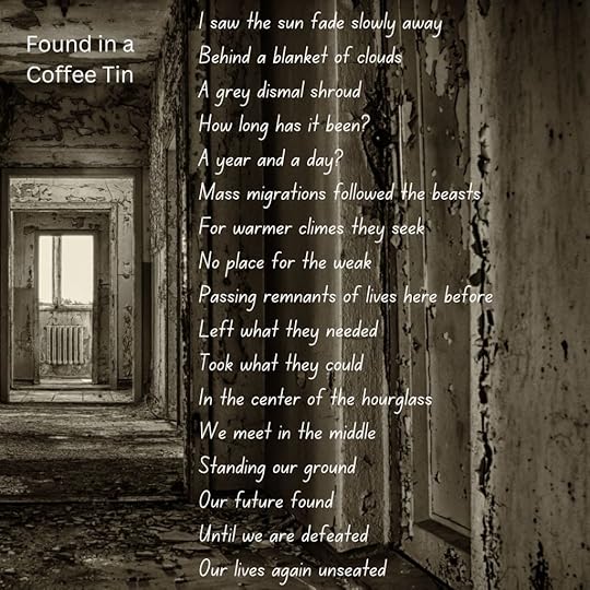 For my sci-fi readers who have read my collection, The Knot at the End of the Rope, you know I wrote a series of poems that represent writings that an explorer might find in a post-apocalyptic world.