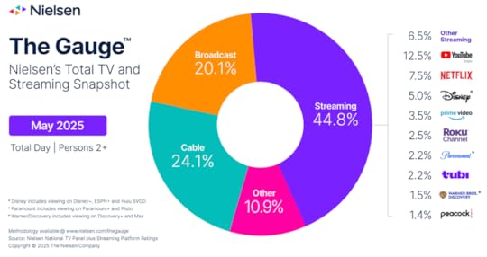 Streaming has officially outpaced cable and broadcast’s combined share of total TV usage, per Nielsen’s latest Gauge report, posting a record 44.8% share of viewership in May — a 71% increase over the last four years.