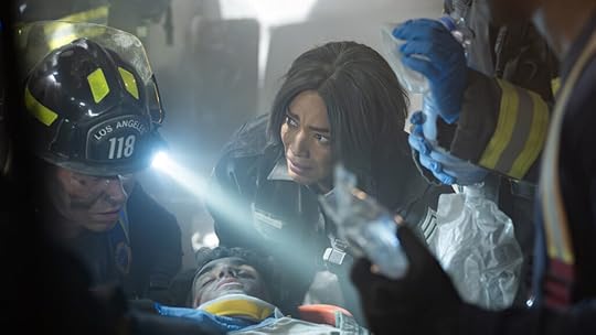 Athena was already on the scene to settle a laundry room dispute between Graham (Sam Roach), the former Cart Cop from Episode 8 earlier in the season and two of his neighbors. She was outside in her patrol car when an explosion rocked the building. She rushed inside to find Graham and his neighbor Donnie pinned under rubble in the laundry room. She sent Donnie’s uninjured girlfriend out to get help. She found Chimney, who opted to go with her, even though Hen (Aisha Hinds) offered to go his place since Athena still blamed Chim for Bobby’s death. Another jolt from the unstable rubble sealed off their exit, trapping them and the two injured men.