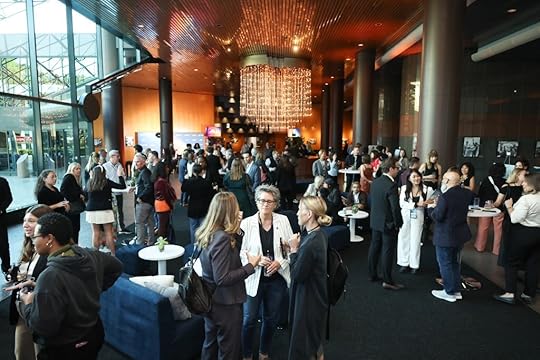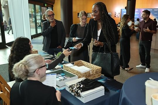 Audience members get ready for the day ahead at TheGrill 2025 at The Directors Guild of America (DGA).