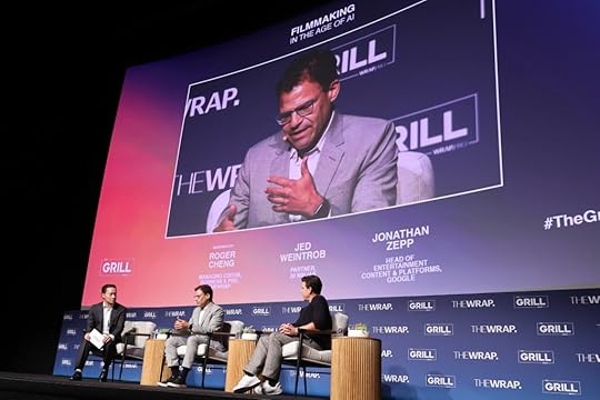 Roger Cheng, Managing Editor, Business & PRO at TheWrap, Jed Weintrob, Partner at 30 Ninjas, and Jonathan Zepp, Head of Entertainment Content & Platforms at Google, speak onstage at TheGrill 2025 during the Filmmaking in the Age of AI panel at The Directors Guild of America (DGA).