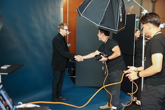 Jeffrey Katzenberg, founding partner at WndrCo, Kimbal Musk, CEO & Co-Founder at Nova Sky Stories, and Courtney Walsh inside the green room and portrait studio at TheGrill 2025