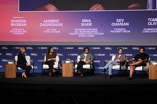 Sharon Waxman, Founder & Editor-in-Chief at TheWrap; Jasmine Daghighian, VP, Film at Topic Studios; Nina Shaw, Founding Partner at Del Shaw Moonves Tanaka Finkelstein Lezcano Bobb & Dang; Sev Ohanian, Founder at Proximity Media; and Tommy Oliver, Filmmaker & CEO at Confluential Films at TheGrill 2025