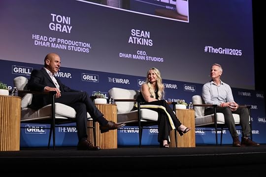 Brent Weinstein, Senior Leadership Team at CAA, Toni Gray, Head of Production at Dhar Mann Studios, and Sean Atkins, CEO at Dhar Mann Studios, speak onstage at TheGrill 2025 during The Rise of Creator-Led Studios with Dhar Mann and Sean Atkins panel.