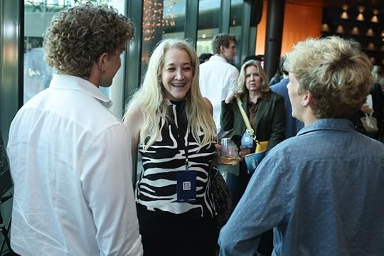 Sharon Waxman, Founder & Editor-in-Chief at TheWrap, interacting with event attendees at TheGrill 2025 at The Directors Guild of America (DGA)