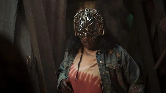 Adebayo isn’t the only one on the team keeping secrets, as she learns when she puts on Peacemaker’s X-ray helmet and sees the Butterfly living in Murn’s head.